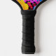 Cobra snake with vibrant turquoise pink and yellow pickleball paddle