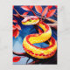 Menacing cobra snake with  vibrant red and yellow scales in a tree showcasing its terrifyingly large fangs and a venomous glare.artificial intelligence art