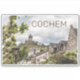 Cochem on the Moselle in Rhineland Palatinate Germany panorama. Cochem castle souvenir for Mosel vacations and wine lovers. Souvenir of the Cochem Moselle vacation in the vineyards.