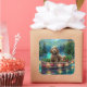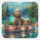 Set sail into the magic of the holiday season with this beautifully detailed illustration, showcasing a proud dog sitting in a festively decorated boat, gliding across a serene Christmas lake. The twinkling lights from nearby pine trees reflect off the water, casting a warm, festive glow that enhances the cosy ambiance. Ornaments dangle from the boat's sides, while glowing lanterns light the way, creating a scene that captures the true essence of Christmas warmth and joy. This nostalgic artwork brings a touch of holiday magic to any space, perfect for those who cherish the spirit of the season.