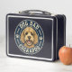 Cockapoo dog dad lunch box featuring a bold front logo and detailed blueprint-style design.