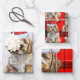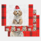 An adorable Cockapoo dog is ready for the holiday season wearing a cute Santa hat and paired with a red and black holiday plaid on this set of gift wrap for the dog lover.