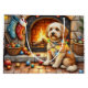 A heartwarming Christmas artwork featuring an adorable Cockapoo sitting beside a glowing fireplace decorated with stockings and twinkling Christmas lights. This cozy holiday scene captures the Cockapoo’s playful personality and loving nature, making it a perfect piece for dog lovers and festive home decor. Bring the warmth of the season and the charm of this fluffy companion into your holiday celebrations.