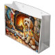 Cockapoo Sitting by Fireplace with Christmas Light Large Gift Bag