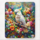 Cockatoo mouse pad featuring an exquisite oil painting of a cockatoo with colourful flowers. This vibrant design adds artistic elegance and natural beauty to your workspace, making it a perfect blend of functionality and sophisticated charm.