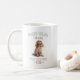 This funny mug is the perfect way to show your love of cocker spaniels, wine, and your sense of humour. The mug features a hand-lettered typography design that says "Cocker Spaniel and Wine Make Everything Fine" decorated with a drawing of a cocker spaniel which adds a touch of cuteness and whimsy.