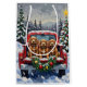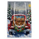 Bring sweet, soulful charm to your holiday season with this adorable Cocker Spaniel Christmas design! This festive scene features three cute, long-eared Cocker Spaniels sitting contentedly in the back of a classic red pickup truck, nestled in a picturesque snowy winter forest. The vintage truck is adorned with a vibrant Christmas wreath, twinkling with red and gold ornaments and warm, glowing lights. Soft snowflakes gently fall, enhancing the winter wonderland effect. A decorated Christmas tree in the background completes this heartwarming picture, making it an ideal Christmas gift for any Cocker Spaniel owner, dog lover, or admirer of festive and beloved dog art. This design perfectly captures the joyful spirit of the holidays.