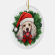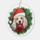 Celebrate the holiday season with our festive cocker spaniel Christmas wreath ornament. This charming ornament features a vibrant illustration of a green Christmas wreath, with the adorable face of a white cocker spaniel wearing a cheerful red Santa hat at the centre. Perfect for dog lovers and holiday enthusiasts, this delightful decoration adds a touch of festive cheer to any Christmas tree. Made from high-quality materials, it ensures lasting beauty year after year. Hang it on your tree or gift it to friends and family for a heartwarming holiday surprise.
