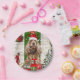 Cocker Spaniel Dog sitting outside decorated home with Christmas wreath, Christmas tree is a perfect Christmas gift idea for dog lovers.