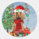 Cocker Spaniel Dog in Snow with Christmas Gifts Classic Round Sticker