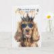 A funny Cocker Spaniel looking aristocratic in a navy blue crown and sunglasses is ready to spread some birthday cheer for the dog lover.