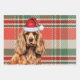 An adorable Cocker Spaniel dog is ready for the holiday season wearing a cute Santa hat and paired with a red and green holiday plaid on this set of gift wrap for the dog lover.