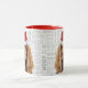 The mug has a design of a cute Cocker Spaniel dog wearing a Santa hat. The background of the mug is covered in a repeating pattern of the words "woof". The image is bright and cheerful, and it would be perfect for a Christmas-themed gift.