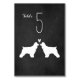 Cocker Spaniel bride and groom silhouettes with heart. A chalkboard style wedding reception table card for Cocker Spaniel lovers. Each card must be numbered and added to cart separately. Visit Jenn's Doodle World for even more dog breed table cards and Cocker Spaniel themed wedding planning products.