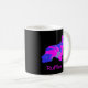Cocker spaniel dog silhouette in crazy hot pink and blue bright modern abstract pattern on a black mug. Personalise with name on the front.