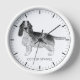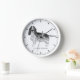 Destei's original black and white colour illustration of a cute English Cocker Spaniel breed dog drawn in digital ink wash style. The clock face is made of simple black lines. There is also a personalizable text area that now reads: "German Boxer".