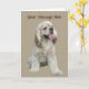 My sister will love this card with our childhoold puppy on it as a thank you for things she did, gifts, etc. Quality, envelope matching and image all clear to mail her. Colors as expected, buff color just as our dog so perfect. Dk brown for script is also matchs well color-wise. Image crisp and true to life.
