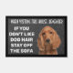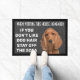 Custom dog doormat with a funny quote. "If you don't like dog hair, stay off the sofa." It has a non-slip rubber that won't crack or buckle, resists fading, mould, and mildew and can be easily cleaned with a hose. Be creative - click on CUSTOMIZE to add/remove/change text, change the picture, resize the picture, change colours, background or anything else the customisation tool will allow!