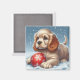 Cocker Spaniel Puppy Resting on Snow With a Ball Magnet
