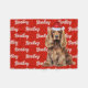 Your dog deserves a blanket of their own, especially with their name and breed on it. Fun throw to warm the season by the fireside or tossed over the sofa. A Cocker Spaniel in a Santa hat on a red background for the dog lover's holiday home decor, with your dog's name patterned across the dog blanket. Background color is yours to change.