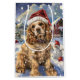This festive design captures the joyful spirit of the holiday season, featuring an adorable pup wearing a Santa hat. The dog is nestled in a winter wonderland, complete with a snowman, a decorated Christmas tree, and beautifully wrapped presents. Snowflakes gently fall, adding a magical touch to the scene, while the vibrant colours of the holiday decorations create a warm and cheerful atmosphere.