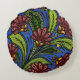 Cockscomb and BumbleBee Vibrant Blue, Green, Rose Round Cushion