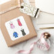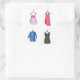 Stickers feature an original watercolor illustration of a series of women's cocktail dresses, each hanging on a hanger. Ideal for your favourite fashion designer, clothing enthusiast, or fashionista, or for mailing store opening announcements or boutique sale information.
