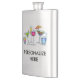 The product is a good size and came exactly as it was pictured. The lid is not attached to the flask, which could be dangerous on drunken nights... The print came out surprisingly well and looks very sharp. Would definitely recommend.