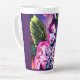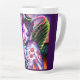 This is colourful, trippy, surreal pop illustration of a girl on the beach, drinking cocktail or mocktail. She enjoys hot summer vibes.