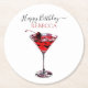 Cocktail Party Cherry Martini Happy Birthday Round Paper Coaster
