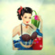 Cocktail Party Girl with halter top and cheerleader style skirt to customise, personalise by changing to your name