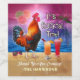 Celebrate your summer birthday or other occasion with this unique, humourous cocktail party design. This funny design is perfect for any tropical adult party, whether it be a day at the pool, the beach, a fun summer bachelorette party - or even a trip to the chicken coop. After all, it's COCKtail time! A rooster crows next to a couple colourful cocktails with a beach scene. The colouring is vibrant, in shades of purple, orange, blue, and sand beige. Grab a margarita and enjoy a day in paradise with this whimsical cocktail party art. Use the template to easily add your text.