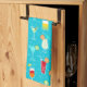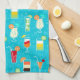 Cocktail Pattern on Teal Background Tea Towel