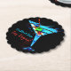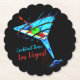 Round scalloped paper coaster featuring the iconic martini glass neon sign at night on a black background. The text reads: "Cocktail Time Las Vegas" and it's totally customizable.