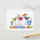 COCKTAIL UP! A bar full of the various cocktail glasses filled with a party full of drinks in a rainbow of colours in a whimsical and colourful style.