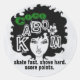 Round sticker featuring Coco Kaboom comic and letter jumble name in green and white with Coco's derby philosophy: skate fast. shove hard. score points