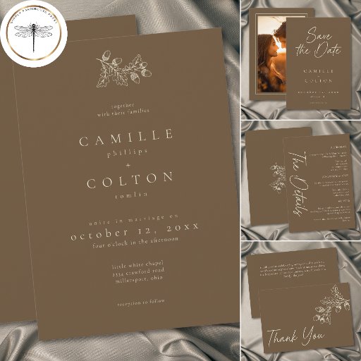 Cocoa Brown Minimalist Leaf Acorn Fall WeddingDesigned by Kathe Santillo