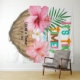 Tiki party theme couples shower or bridal shower photo backdrop tapestry features a watercolor tropical coconut cocktail with pink hibiscus flowers, palm leaf and an "It's Tiki Time!" caption in vibrant, summery colours. The text can be personalised to suit your occasion, so whether you are having an island-inspired couples shower, a beach theme bridal shower, or a Hawaiian theme party, this fun and festive wall art will add some island paradise ambiance to your celebration. Art by KL Stock