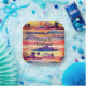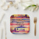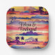 Personalised Coconut Palm Tree Colourful Sunset disposable paper plates for coastal weddings, beach parties, any tropical themed event. Customise the bride and groom names text field or change the text completely to personalise any occasion. Great for weddings, anniversaries, birthdays and summer luau theme parties.