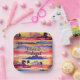Coconut Palm Tree Colourful Coastal Sunset Paper Plate