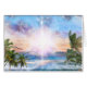 Beautiful seascape with palm trees, jumping dolphins and radiant light. By Daniel B. Holeman.
