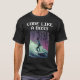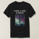 I give wanted to give this a 4 instead of a 5 because these Basic DARK T0shirts run unexpectedly SLIM or Narrow. Which is great if you do not have a potbelly, but I have a paunch. It isn't the shirt's fault that I've got a beer belly. The design and shirt itself is a quality cotton shirt. The color is more of a deep purple, but still a very pretty color. The Basic DARK T-shirts run a bit SLIMMER than the Basic Ts. The neck is a fraction narrower (or seems to be narrower) also. I'm a paunchy middle-aged woman and my neck is 12 inches (31cm) thick and the neckline fell about the same as in the photo of the man, and I had the desire to tug it a bit. So if you're a thick necked man or like loose shirts, be aware these are slimmer shirts. Once I get rid of my lockdown paunch it'll look great. The shirt washed well in cold water with no apparent bleeding. We don't have a dryer, so it hung dry. Did not shrink. Love the colors and the design. The design looks smaller on my shirt than it does on the model on-line. But still, it looks good on the shirt. The printing looks as it does on the model, just the size seems fractionally smaller. Washed garment in cold water, hung dry and design appeared unaffected.