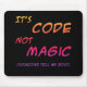 It's Code Not Magic (someone tell my boss) - black mousepad with rainbow lettering.