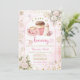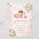 Coffee A Baby is Brewing Pink Bow Baby Shower Gold Invitation