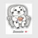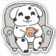 Transform your everyday items into a cosy, charming scene with our latest sticker – a delightful dog sitting on an overstuffed chair, sipping a cup of coffee. This sticker is the perfect blend of comfort and cuteness, guaranteed to bring a smile to your face every time you see it.