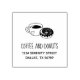A simple illustration of a coffee mug and a chocolate glazed doughnut. Customise with your own address.