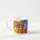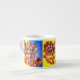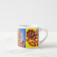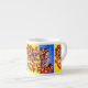 Funky Coffee Beans On A Yellow And Blue Bag / Material Espresso Coffee Cup / Mug to add to your home / office / business drinkware collection. A cool gift / present idea for all who love custom design personalised items, positive vibes, food and organic theme, coffee drink etc. Keywords: busy print, yellow, royal blue, pale, foodie, healthy.