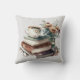 Coffee Boho Floral Watercolor throw pillow with an elegant, vintage vibe in soft earth tones of green, beige, and brown. Your coffee-loving friend - or perhaps you - will love the calming effect of the stack of classic books, cup of brewed coffee, vase of flowers, and of course, the cute glasses that most of us will use while reading! Makes a beautiful and subtle decor statement wherever it is placed in your home.