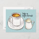 This is a watercolor painting with outline drawn with brush pens, There is a coffee in a mug on a saucer and cream next to it. It is a cute and modern illustration. It says “Take a Coffee Break” in the illustration.