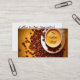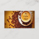 This business card features a digitally enhanced image of a coffee cup surrounded by coffee beans. All of the text can be customised as needed.